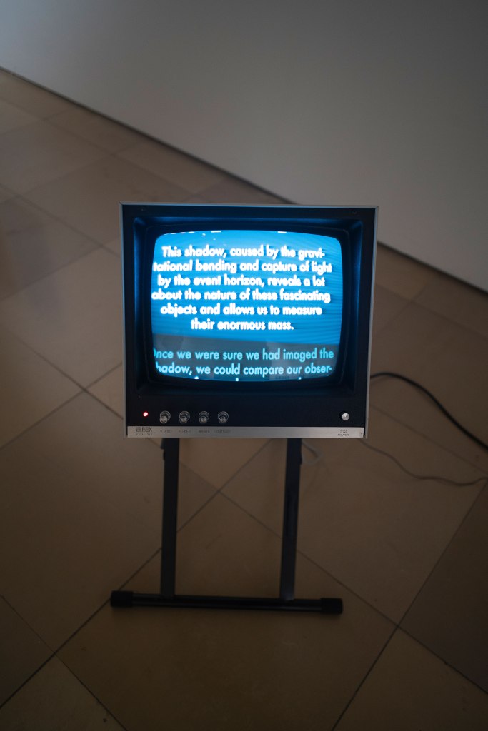 The text which is shown on the monitor is an equation between black holes and the self: